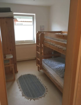 (+ einem Kleinkind) wunderbar geeignet. Die Wohnung ist für Nichtraucher und bietet ein angenehmes Ambiente. Neben dem Wohn-/Ess-/Küchenbereich, einem schnuckligen Bad und 2 Schlafzimmern können Sie bei schönem Wetter unsere Terrasse, sowie die eingezäunte Liegewiese nutzen und haben dort in Süd-Lage nahezu den ganzen Tag Sonne. Zur Wohnung gehört ein PKW-Stellplatz.