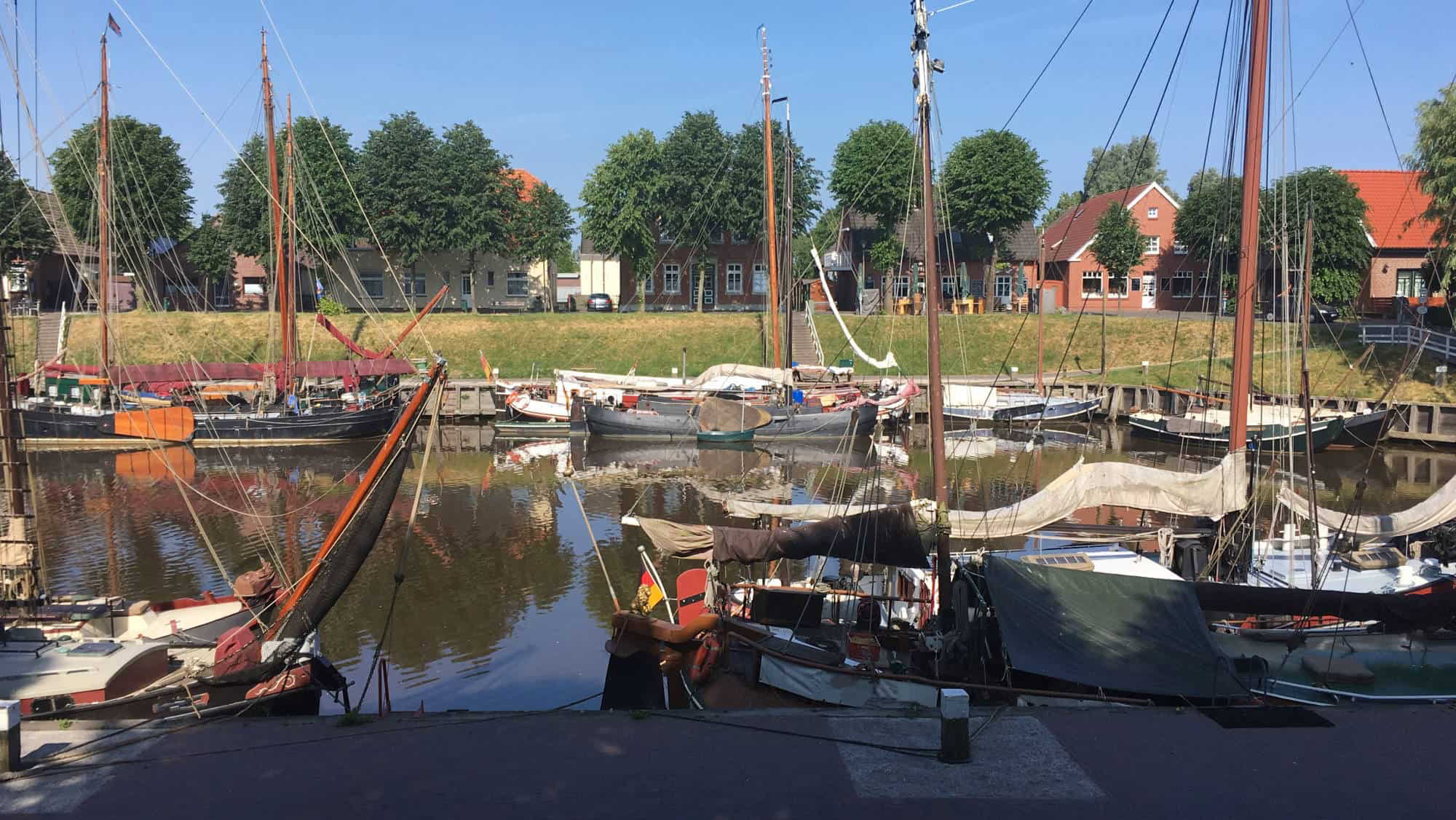 „3 Häfen – 2 Orte – 1 Nordseebad“. Das ist der Slogan, mir dem Carolinensiel wirbt. Und es stimmt: Es gibt den Museumshafen, den Yachthafen und den Außenhafen, die Orte sind Carolinensiel und Harlesiel, die unmittelbar zusammengehören und das alles ergibt ein Nordseebad.